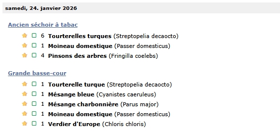 Les données ont été transmises sur le site de l’observatoire des oiseaux des jardins : www.oiseauxdesjardins.fr